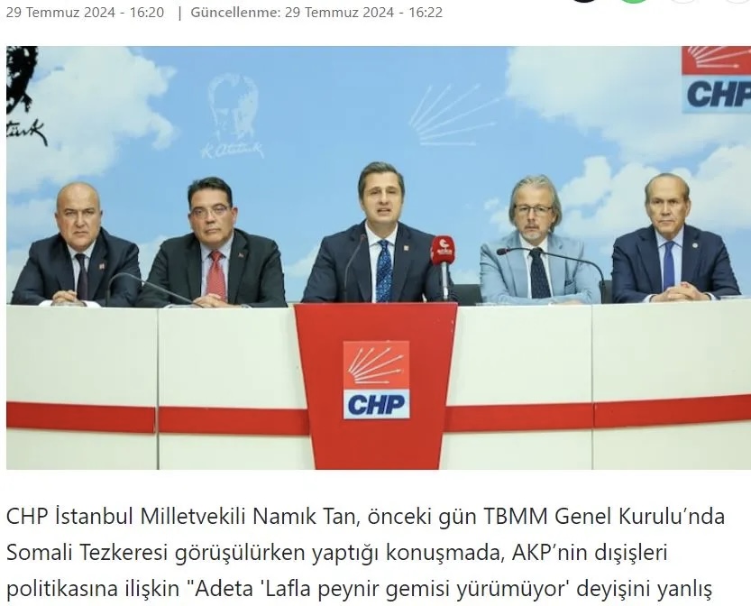 Είδαμε ότι ο εκπρόσωπος του Κόμματος Δικαιοσύνης και Ανάπτυξης- AKP Ομέρ Τσελίκ ακολούθησε την παραπληροφόρηση που ξεκίνησε μέσω της ομιλίας του βουλευτή μας στην Κωνσταντινούπολη κ. Namık Tan, και μάλιστα έτρεξε να την προλάβει. Λαμβάνοντας ως οδηγό τα λόγια του Μουσταφά Κεμάλ Ατατούρκ: «Θα πρέπει να θεωρούμε τη ναυτιλία ως το μεγάλο εθνικό ιδεώδες των Τούρκων και να το πετύχουμε σε σύντομο χρονικό διάστημα».
