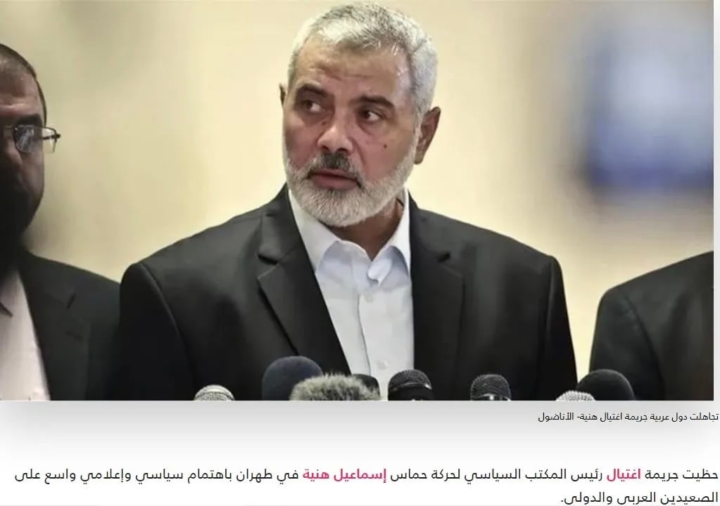 Η δολοφονία του επικεφαλής του πολιτικού γραφείου της Χαμάς, Ισμαήλ Χανίγια, στην Τεχεράνη έλαβε ευρεία δημοσιότητα σε αραβικό και διεθνές επίπεδο.