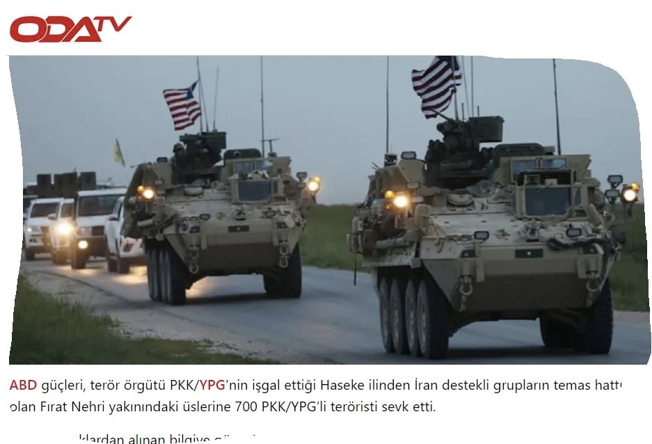 Σύμφωνα με πληροφορίες που ελήφθησαν από τοπικές πηγές, γράφει η τουρκική Odatv, οι αμερικανικές δυνάμεις μετέφεραν 700 τρομοκράτες Κούρδους και Άραβες των Συριακών Δημοκρατικών Δυνάμεων από τις βάσεις Robarya, Rümeylan και Shaddadi στη Χασάκα προς τις βάσεις άντλησης πετρελαίου Κόνικο και Όμαρ, κοντά στον ποταμό Ευφράτη, στη γραμμή επαφής ομάδων που υποστηρίζονται από το Ιράν.