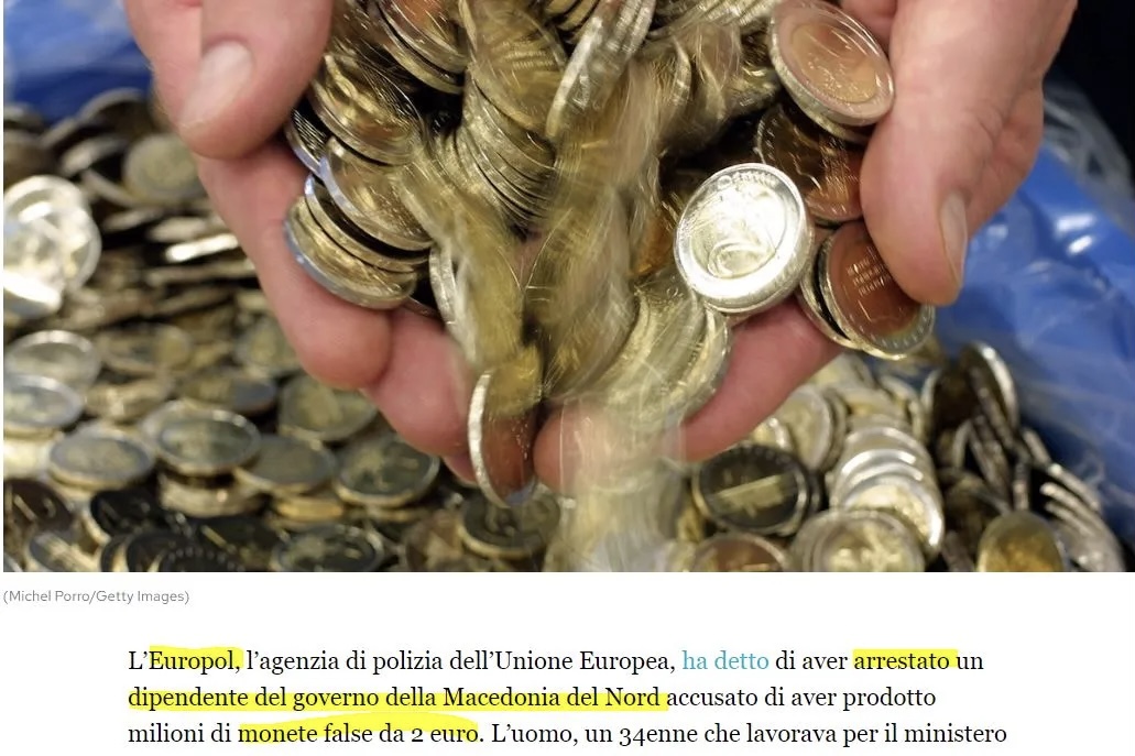 Η Europol ανακοίνωσε ότι συνέλαβε έναν κυβερνητικό υπάλληλο που κατηγορείται ότι παρήγαγε εκατομμύρια πλαστά νομίσματα των 2 ευρώ, αναφέρουν ιταλικά μέσα ενημέρωσης (il Post).