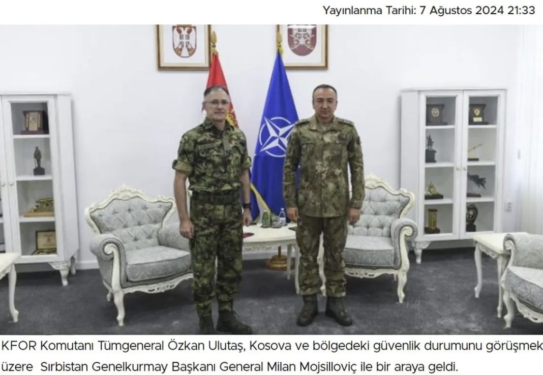Ο Διοικητής της KFOR, ο Τούρκος Υποστράτηγος Οζκάν Ουλουτάς συναντήθηκε με τον Σέρβο Αρχηγό Γενικού Επιτελείου Στρατηγό  Μίλαν Μοϊσίλοβιτς για να συζητήσουν την κατάσταση ασφαλείας στο Κοσσυφοπέδιο και την περιοχή.