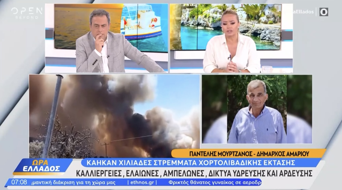 Μιλώντας στον τηλεοπτικό σταθμό OPEN o δήμαρχος Αμαρίου, Παντελής Μουρτζάνος ανέφερε πως η πυρκαγιά «ήταν πρωτόγνωρη και δεν την έχουμε ζήσει εδώ και πολλά χρόνια» ενώ στην περιοχή οι άνεμοι ήταν θυελλώδεις και δυσκόλεψαν το έργο της πυροσβεστικής. «Ο αέρας έφτασε μέχρι και τα 10 μποφόρ», σημείωσε ο δήμαρχος και επεσήμανε πως «πραγματοποιήσαμε άμεσα την εκκένωση των χωριών και κυρίως των ηλικιωμένων».