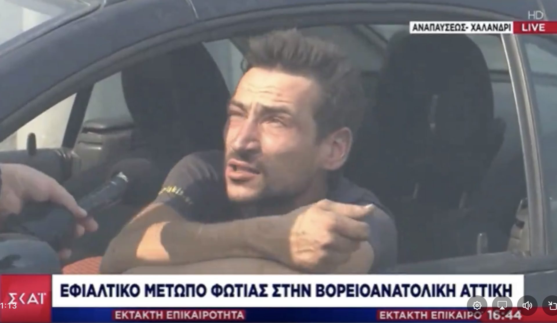 Δακρυσμένος ένας κάτοικος της περιοχής της Πεντέλης περιγραφει τον εφιάλτη που έζησε στις κάμερες.