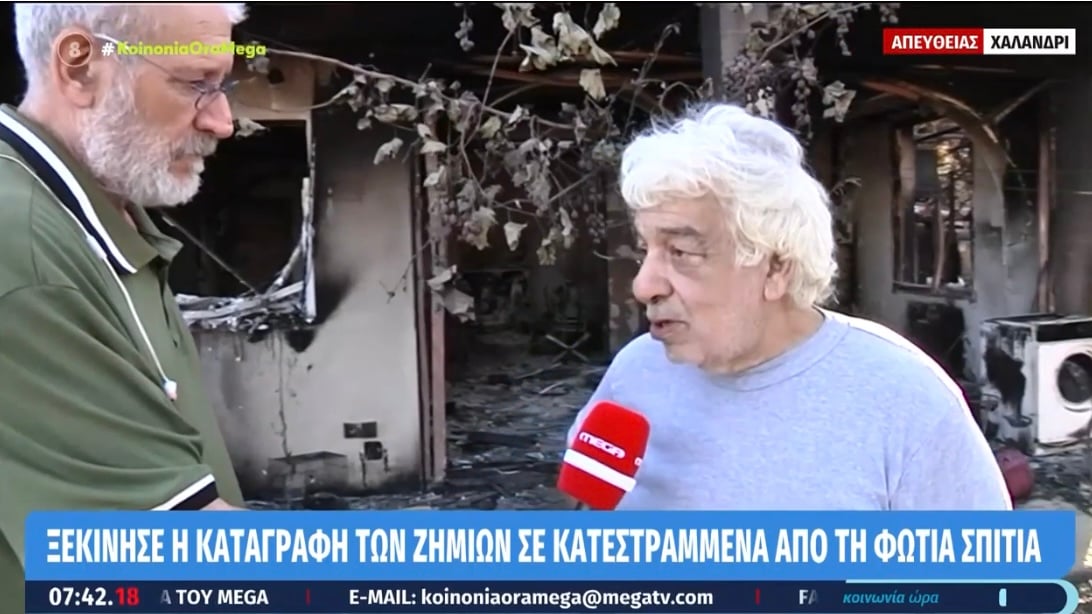Ο κύριος Σάκης έχασε το σπίτι του και την δουλειά του, όταν η πύρινη λαίλαπα «σάρωσε» τα πάντα στο Πάτημα Χαλανδρίου. Πρόκειται για τον συνάδελφο της αδικοχαμένης 65χρονης, που απανθρακώθηκε μέσα στη βιοτεχνία κατασκευής στεφάνων. Ο άνδρας έκανε λόγο για αδιαφορία από την πλευρά της Πολιτείας, που δεν έκανε το παραμικρό, για να στηρίξει τους ανθρώπους που είδαν τις ζωές τους να γκρεμίζονται.