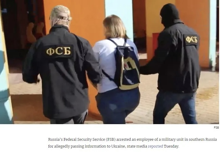 Η Ομοσπονδιακή Υπηρεσία Ασφαλείας της Ρωσίας (FSB, πρώην KGB) συνέλαβε μία υπάλληλο στρατιωτικής μονάδας στη νότια Ρωσία για φερόμενη διαβίβαση πληροφοριών στην Ουκρανία, ανέφεραν τα κρατικά μέσα ενημέρωσης την Τρίτη, σύμφωνα με τους The Moscow Times.