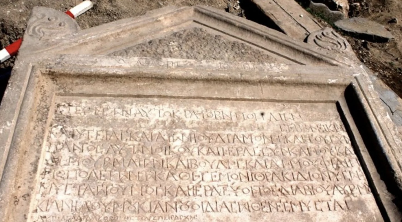 Η επιγραφή που ανακαλύφθηκε στην αρχή των επιτόπιων ερευνών του χώρου είναι ένα εξαιρετικό εύρημα.