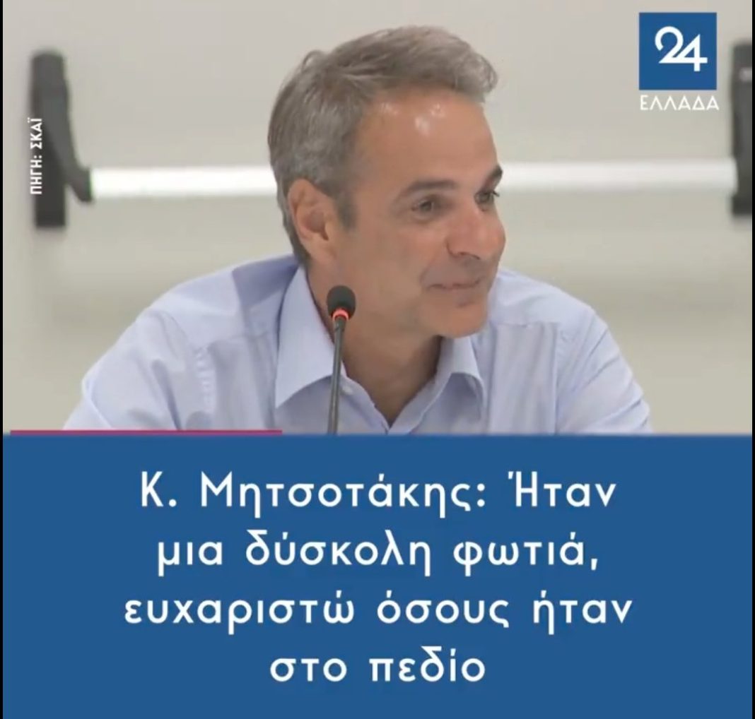 Η φωτογραφία είναι από την χθεσινή τοποθέτηση του Κυριάκου Μητσοτάκη στη διυπουργική σύσκεψη που συγκάλεσε χθες στο Δημοτικό Κατάστημα Πεντέλης, παρουσία του Περιφερειάρχη Αττικής Νίκου Χαρδαλιά και των δημάρχων της πυρόπληκτης περιοχής.