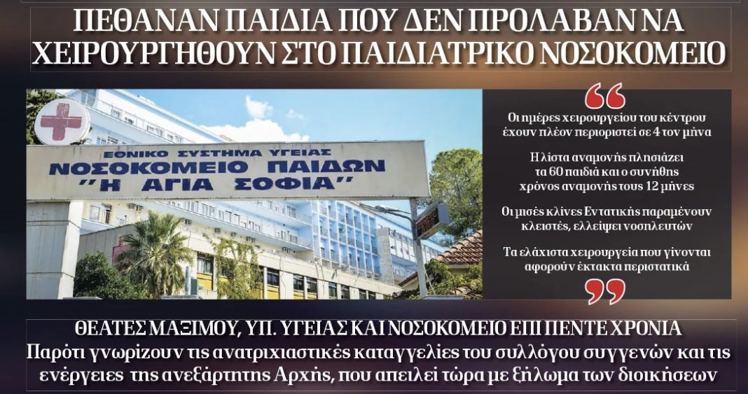 Σχετικά με σημερινό πρωτοσέλιδο δημοσίευμα της εφημερίδος @DimokratiaGr η Διοίκηση του Νοσοκομείου «Αγία Σοφία» δηλώνει τα εξής: