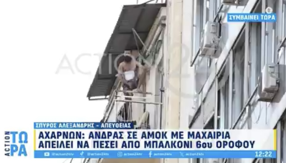 Αποκλεισμένη ήταν η οδός Αχαρνών στο ύψος του υπουργείου Αγροτικής Ανάπτυξης, καθώς o 28χρονος σε διαμέρισμα του 6ου ορόφου πολυκατοικίας, απειλούσε ότι θα ανατιναχθεί με φιάλη υγραερίου. Στο βίντεο που κυκλοφορεί στο X, κάνει το γνωστό σύμβολο των τζιχαντιστών με το υψωμένο δάχτυλο.