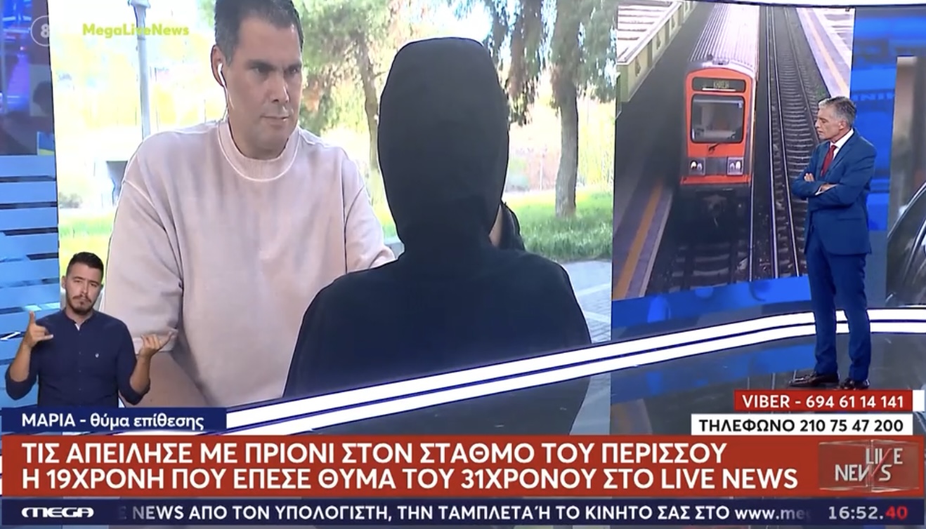 «Γυρνούσα από τη βόλτα με μία φίλη μου στις 22:20 το βράδυ. Ανέβαινα τις κυλιόμενες προς τον σταθμό. Ο δράστης βρισκόταν εκεί στο σημείο. Με κοίταζε από πριν. Όταν κατευθύνθηκα προς την αποβάθρα μου μίλησε με χυδαίο τρόπο», ανέφερε στην εκπομπή το βασικό θύμα της επίθεσης. «Του είπα “μην μου μιλάς, δεν σε ξέρω” και συνέχισε να μου μιλάει. Δεν του έδωσα σημασία και κάθισα στα καθίσματα της αποβάθρας. Μπήκε κι εκείνος μέσα, έκανε χειρονομίες και μου φώναζε, συνέχισε να μου μιλάει χυδαία. Πήρε τηλέφωνο έναν φίλο του και έλεγε ότι θα με περιμένει στην επόμενη στάση και ότι θα μου κάνουν κακά πράγματα», πρόσθεσε.