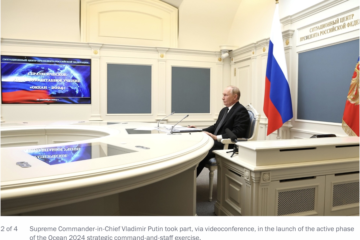 Για πρώτη φορά εδώ και τρεις δεκαετίες, οι ρωσικές ένοπλες δυνάμεις διεξάγουν ασκήσεις διοίκησης και επιτελείου τόσο μεγάλης κλίμακας όπως οι «Океан 2024»/«Ωκεανός 2024»,δήλωσε σήμερα ο Ρώσος πρόεδρος Βλαντίμιρ Πούτιν, συμμετέχοντας μέσω βιντεοσύνδεσης στην έναρξη της ενεργούς φάσης των ασκήσεων.