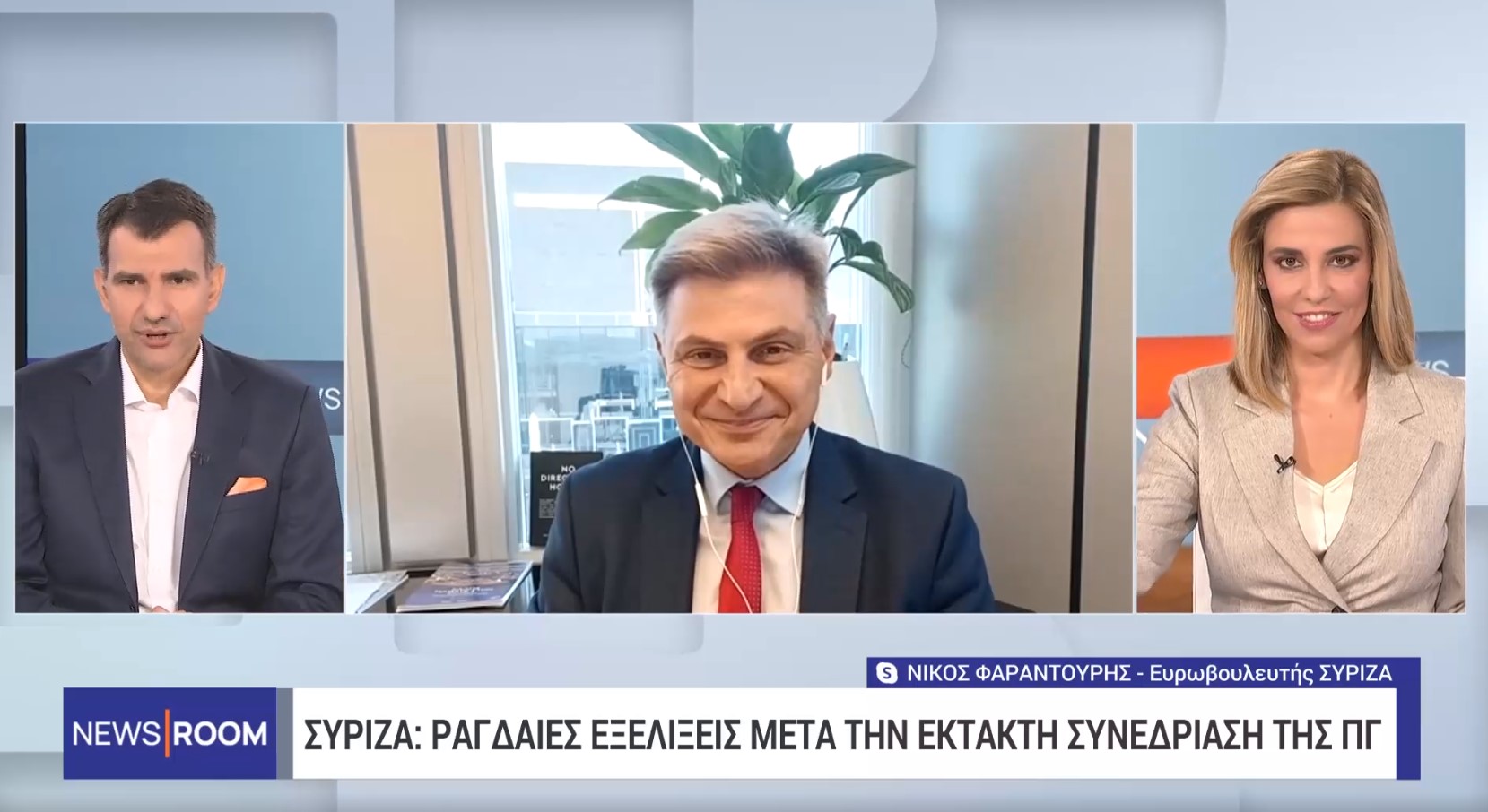 Ο Νικόλας Φαραντούρης, ευρωβουλευτής του ΣΥΡΙΖΑ, μίλησε στην εκπομπή Newsroom του ΕΡΤNews, για τις εξελίξεις στον ΣΥΡΙΖΑ.