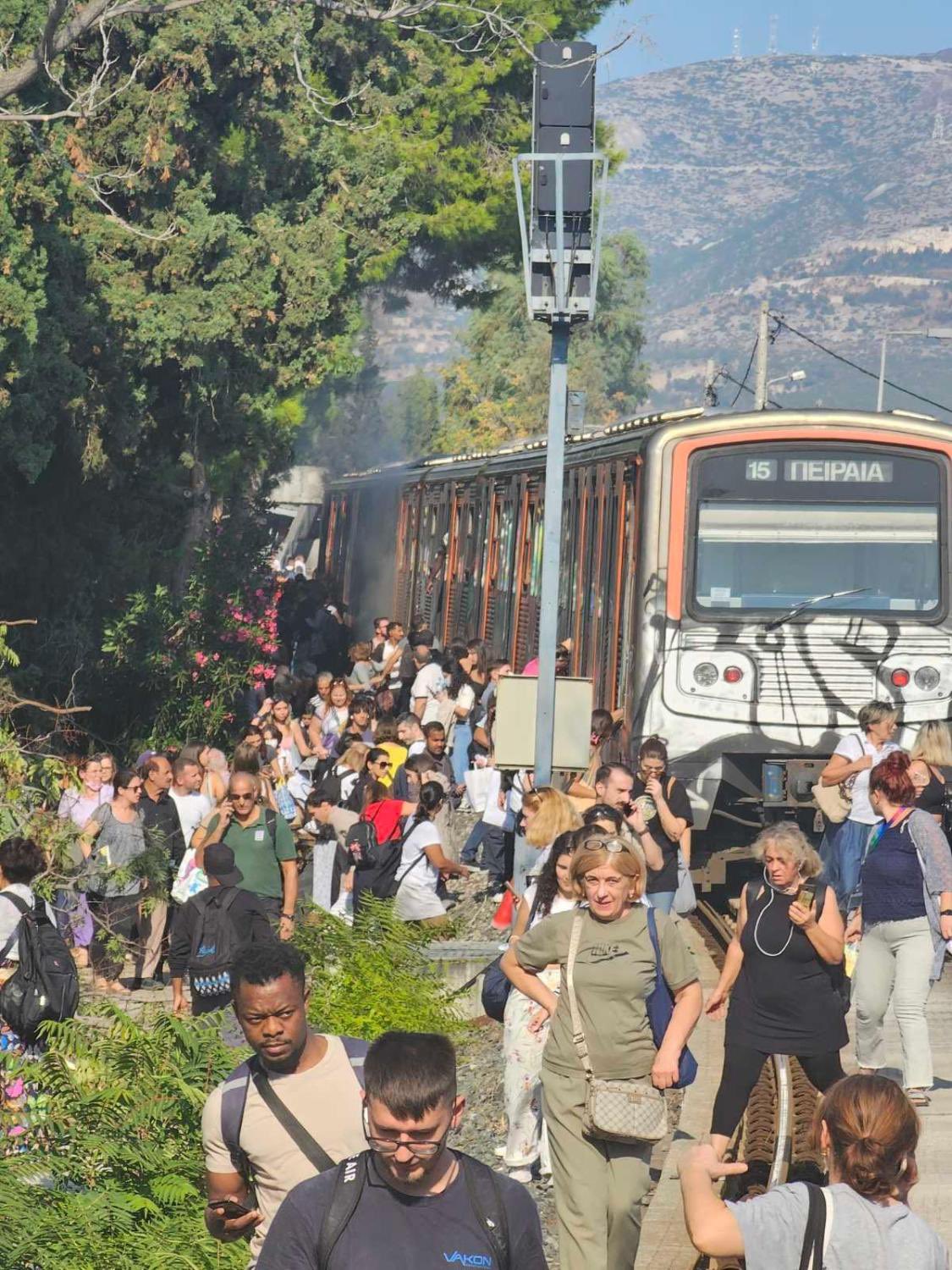 Βγήκαν απο το τρενο που πήρε Φωτια για να σωθούν και περπάταγαν πάνω στις ράγες του τρένου, χωρίς να υπάρχει καποιος να τους βοηθήσει.