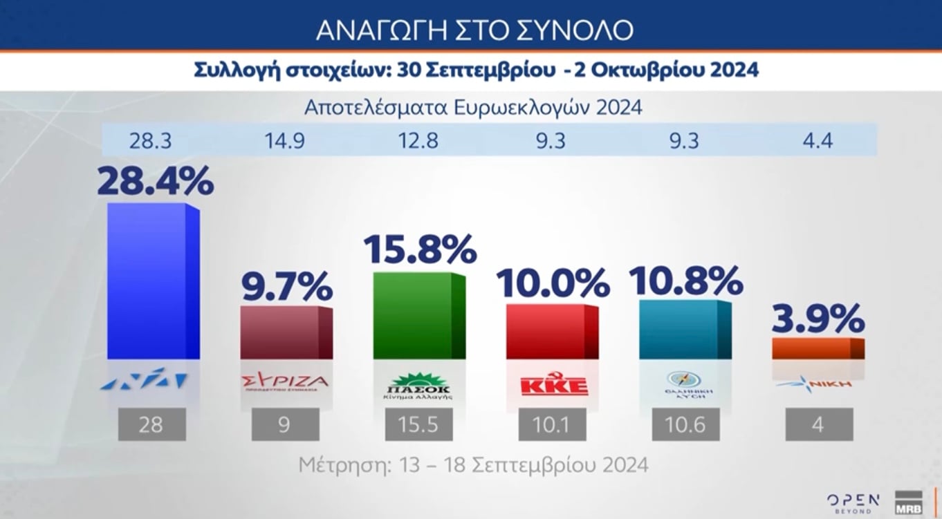 Τα ποσοστά που καταγράφονται στην πρόθεση ψήφου είναι τα εξής: