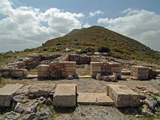Στην κορυφή του είχε οικοδομηθεί αρχαίος ιερός οίκος 8Χ5μ. με περίβολο που είχε κυκλώπειο τείχος, μέσα στο ιερό του οποίου ανακαλύφθηκαν λατρευτικά είδωλα ανδρών και γυναικών και αναθηματικά μέλη.