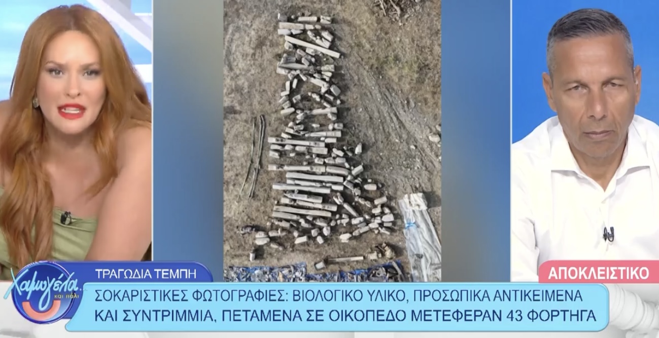 Η εκπομπή «Χαμογέλα και Πάλι» παρουσιάζει φωτογραφίες ντοκουμέντο από βιολογικό υλικό, προσωπικά αντικείμενα επιβαινόντων και συντρίμμια από τα δύο τρένα στα Τέμπη, που βρέθηκαν πεταμένα σε οικόπεδο.