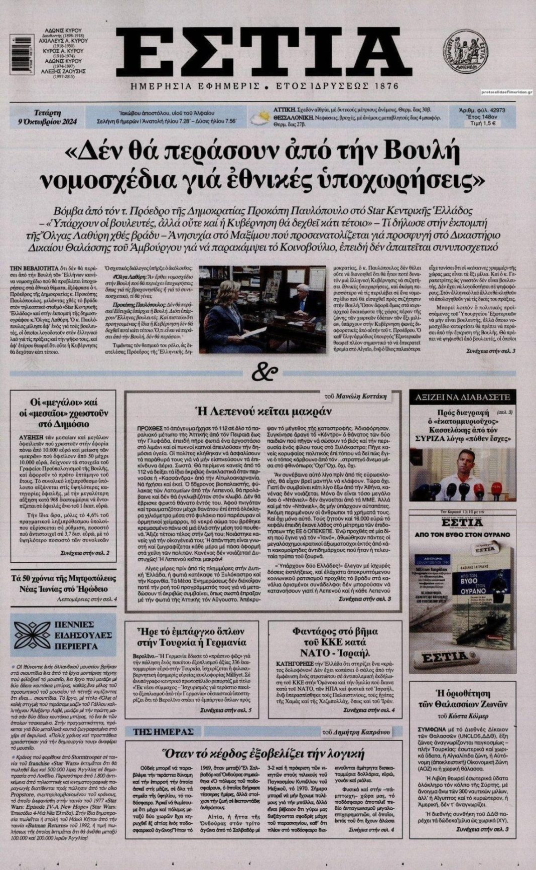 Στην Εφημεριδα Εστια: Προκοπης Παυλοπουλος – Δέν θά περάσουν ἀπό τήν Βουλή νομοσχέδια γιά ἐθνικές ὑποχωρήσεις