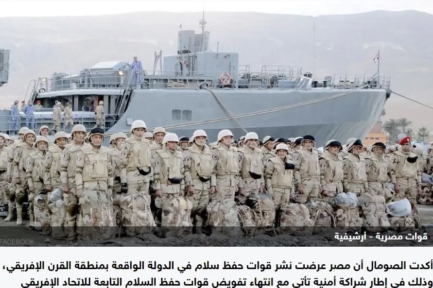 Η Σομαλία επιβεβαίωσε ότι η Αίγυπτος προσφέρθηκε να αναπτύξει ειρηνευτικές δυνάμεις στη χώρα που βρίσκεται στο Κέρας της Αφρικής, ως μέρος μιας εταιρικής σχέσης ασφάλειας που έρχεται με το τέλος της εντολής των ειρηνευτικών δυνάμεων της Αφρικανικής Ένωσης που αναπτύσσονται εκεί για μεγάλο χρονικό διάστημα.