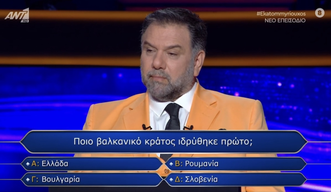 Ποιο Βαλκανικό κράτος ιδρυθηκε πρωτο ήταν η ερώτηση στην πετυχημένη εκπομπή του Γρήγορη Αρναούτογλου, Ποιος θέλει να γίνει Εκατομμυριούχος, μια ερώτηση που δυσκόλεψε την παιχτρια και επέλεξε να χρησιμοποιήσει την νεα βοήθεια στο παιχνίδι που ειναι η αλλαγή ερώτησης.