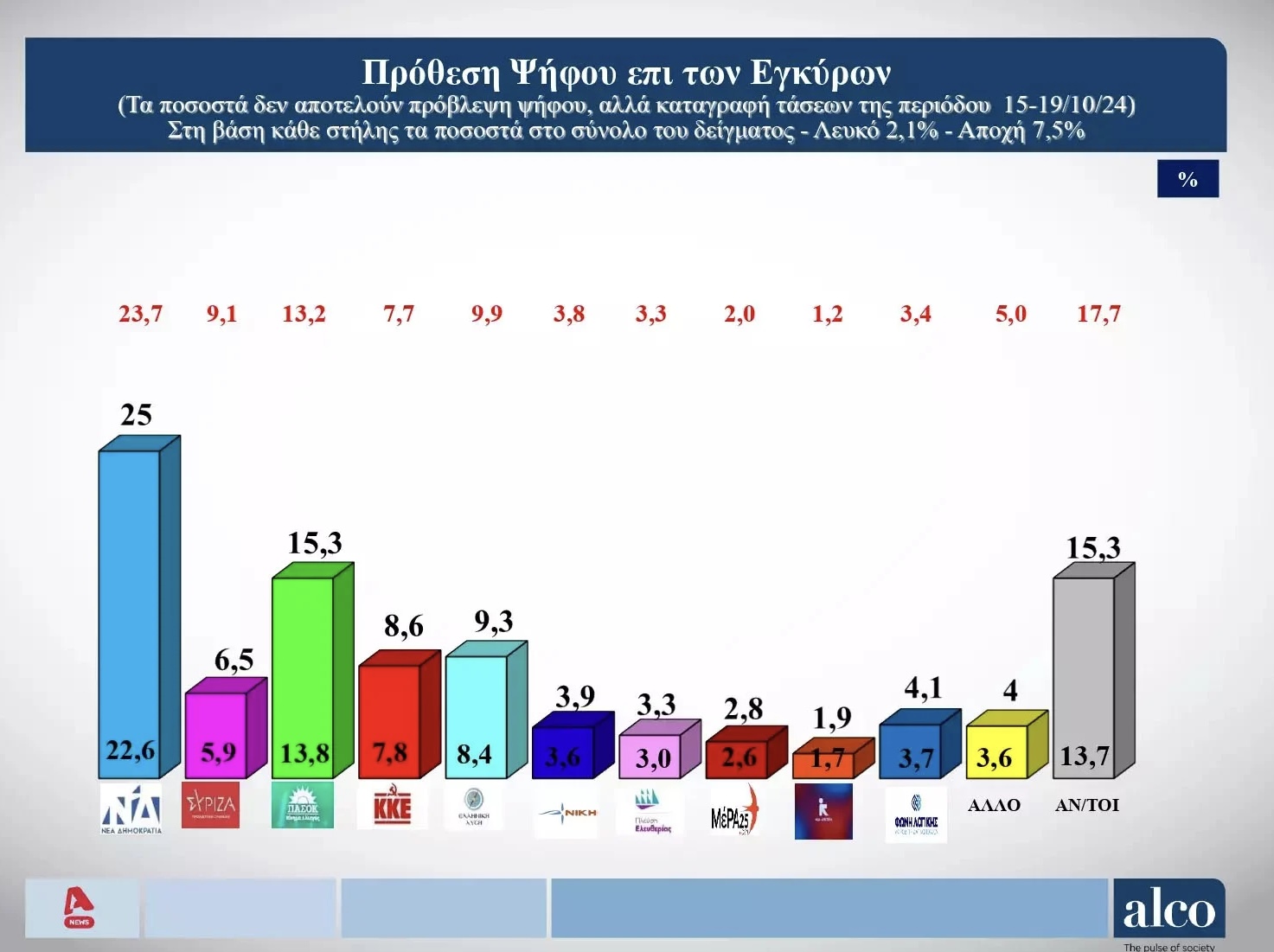 Δυσαρεστημένοι από την απόδοση της κυβέρνησης εμφανίζονται οι πολίτες και αυτό το κλίμα αποτυπώνεται και στα αποτελέσματα της δημοσκόπησης της Alco, που ολοκληρώθηκε στις 19 Οκτωβρίου.