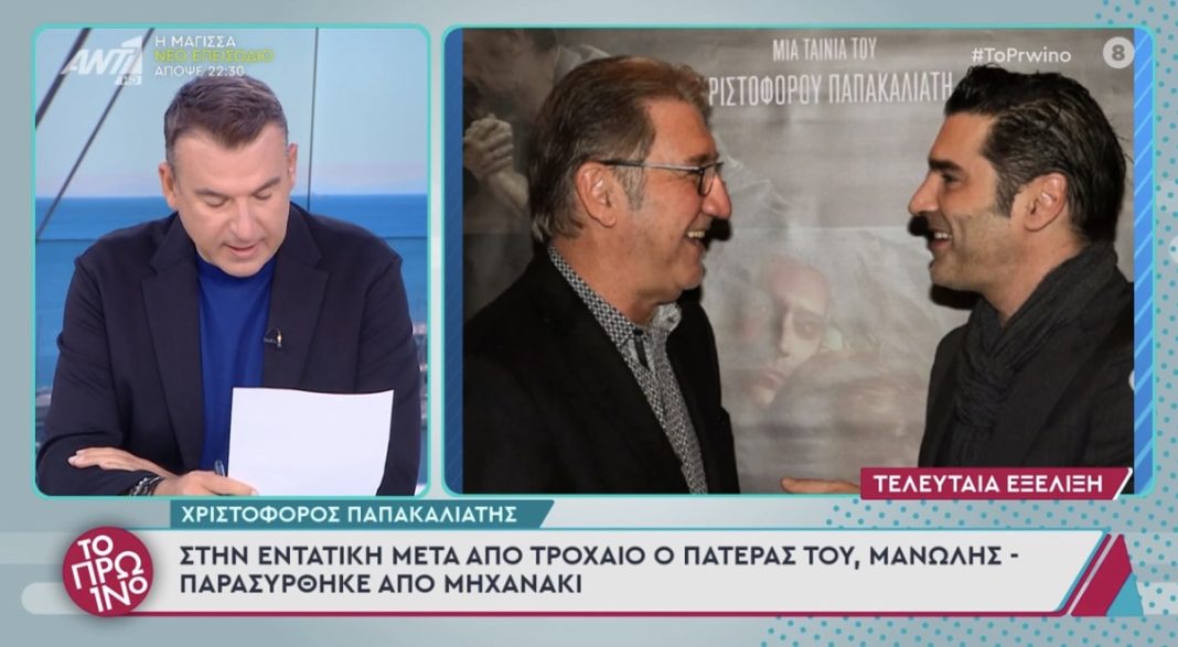 Στην εντατική βρίσκεται ο πατέρας του Χριστοφορου Παπακαλιατη, Μανωλης που παρασύρθηκε απο μηχανάκι ενώ περπατούσε. Στο μηχανάκι επέβαιναν ένας 50χρονος με τον 17χρονο γιο του.