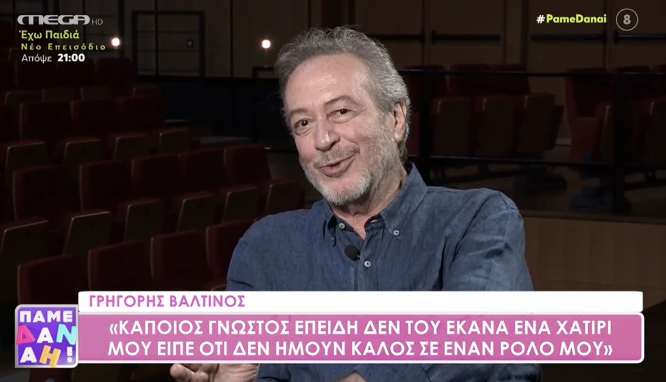 Ο αγαπημένος ηθοποιός Γρηγόρης Βαλτινός παραχώρησε συνέντευξη στην εκπομπή Πάμε Δανάη και μίλησε για την αγάπη του για το θέατρο, τις μικτές οικογένειες, αλλά και τα social media.