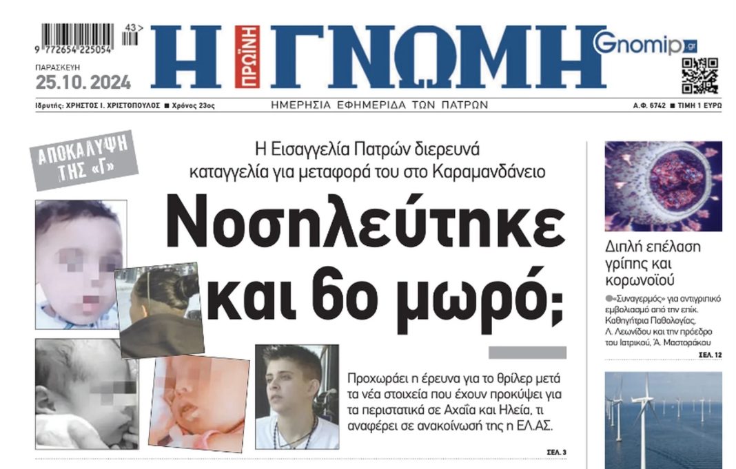 Αμαλιαδα: Σοβαρότατη αποκάλυψη έκανε σήμερα η εφημερίδα «Γνώμη» της Πάτρας για την υπόθεση με τα νεκρά μωρά