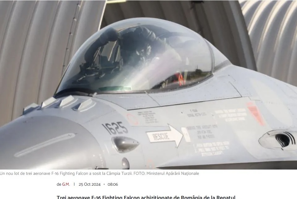 Σύμφωνα με τα ρουμανικά media, αυτή είναι η τέταρτη σειρά τριών αεροσκαφών F-16 που έχουν φτάσει στη χώρα, από αυτά που αγόρασε η Ρουμανία από το Βασίλειο της Νορβηγίας, μαζί με το σχετικό πακέτο αγαθών και υπηρεσιών. Η ολοκλήρωση της παραλαβής ολόκληρης της παρτίδας εκτιμάται για το τέλος του 2025.