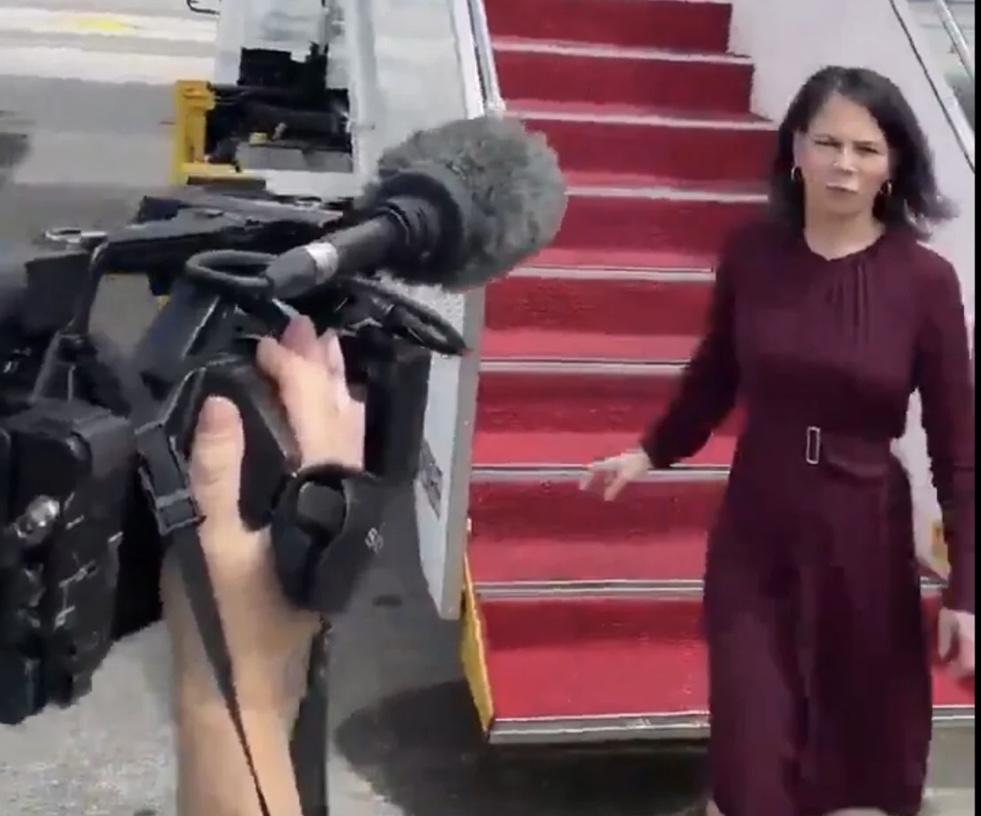 Το βίντεο δείχνει Μπέρμποκ κατά την άφιξη της στη Μαλαισία. Το κυβερνητικό αεροπλάνο έπρεπε να προσγειωθεί απροσδόκητα σε άλλο σημείο του αεροδρομίου, έτσι η αντιπροσωπεία υποδοχής στεκόταν λίγα μέτρα μακριά. Αυτά φυσικά, σύμφωνα με τους Γερμανούς που έσπευσαν να απαντήσουν από το σάλο που προκλήθηκε.