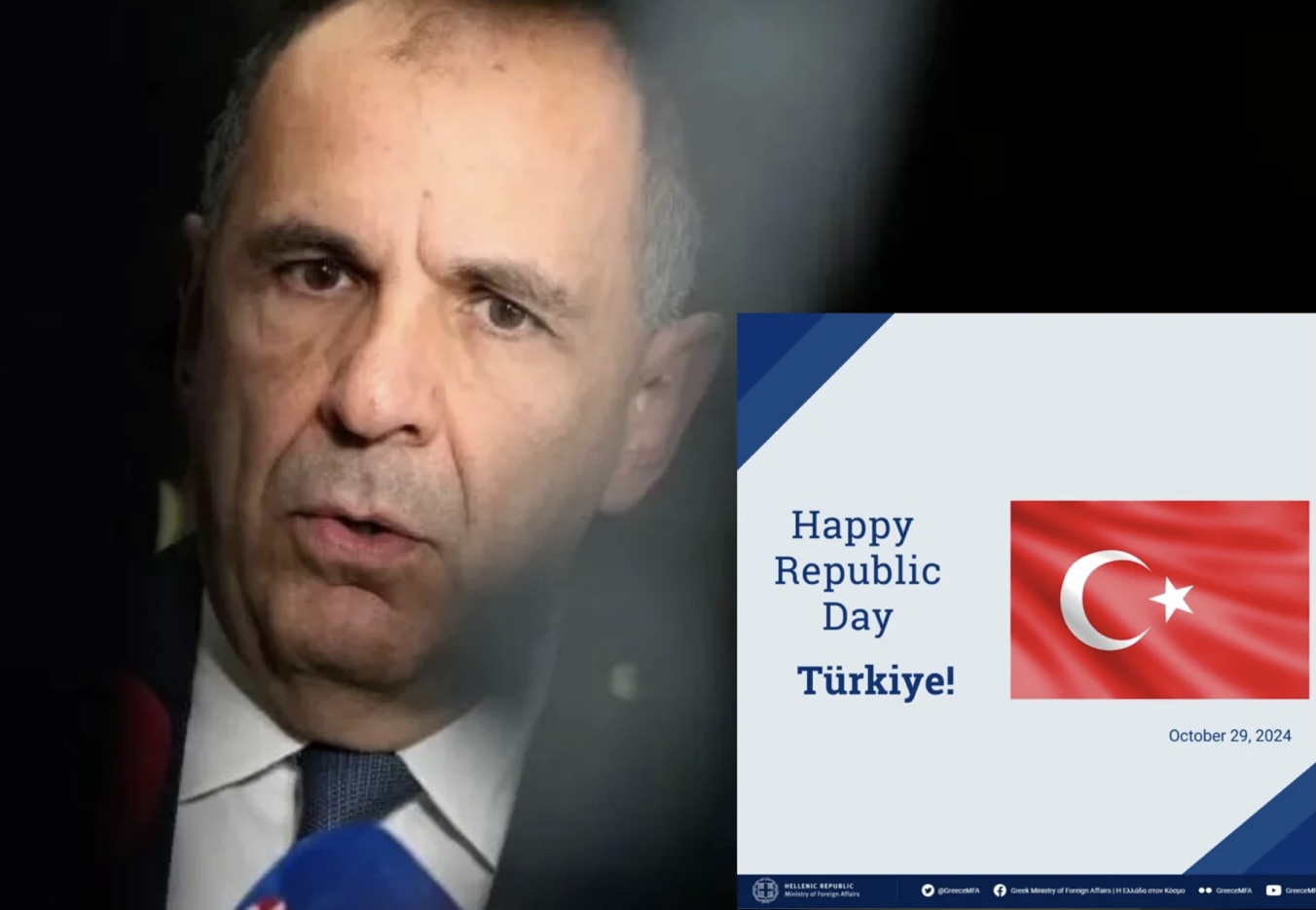 Το ΥΠΕΞ Γεραπετρίτη λοιπόν, εύχεται στον λαό της Τουρκίας και την κυβέρνηση, για την «ημέρα της τουρκικής Δημοκρατίας»!