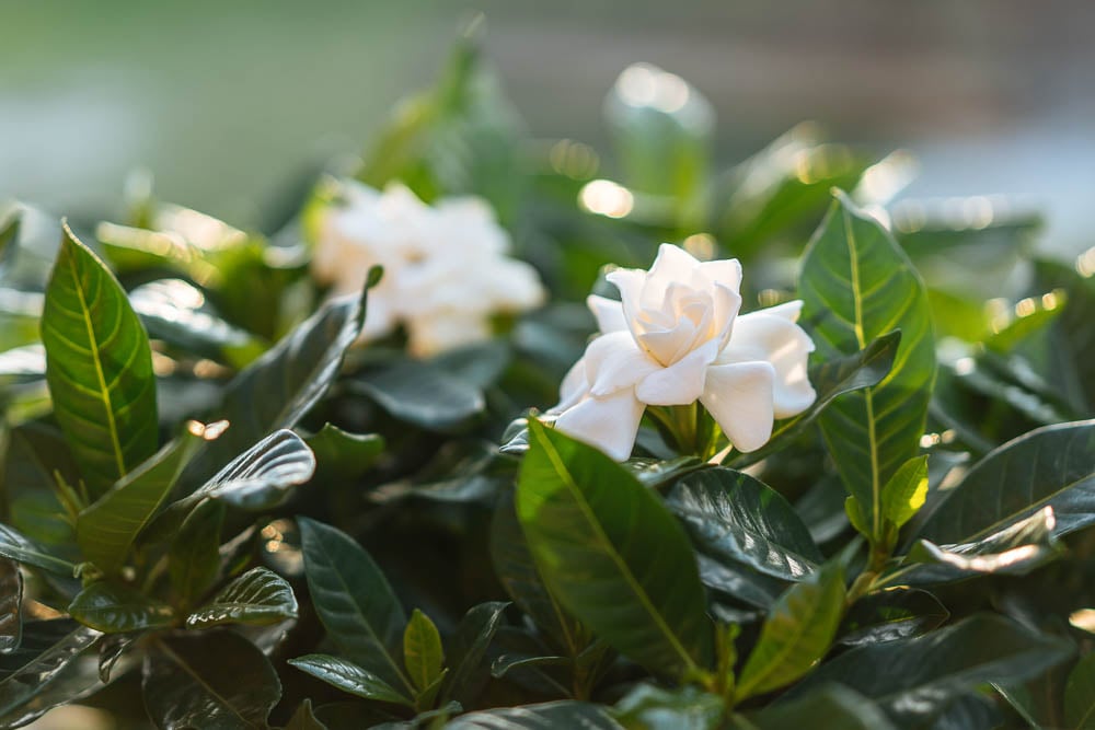 Εξασφαλίζουμε δροσερές ημισκιερές ή σκιερές θέσεις για τη γαρδένια με γλυκό απογευματινό φως.