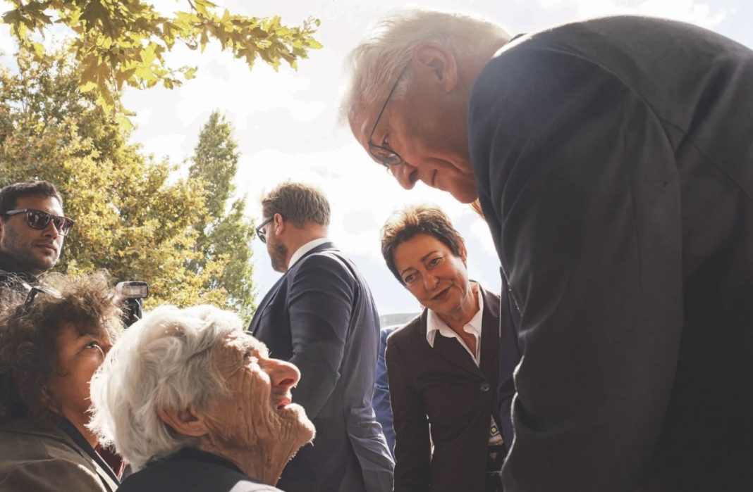 Η 97χρονη επιζήσασα των γερμανικών θηριωδιών Δέσποινα Φωτάκη «έδωσε» στον Σταϊνμάιερ μια φράση που θα τη θυμάται σε όλη του τη ζωή. Μπορεί η γερόντισσα να καθόταν στην καρέκλα και το μπαστούνι της να έτρεμε, αλλά όταν βρέθηκε μπροστά της ο Γερμανός πρόεδρος, του έπιασε με όση δύναμη είχε το χέρι και, κρατώντας το όσο πιο σφιχτά μπορούσε, ζήτησε από τη μεταφράστρια να του μεταφέρει: «Το χέρι που μου δίνει είναι το χέρι του σφαγέα».