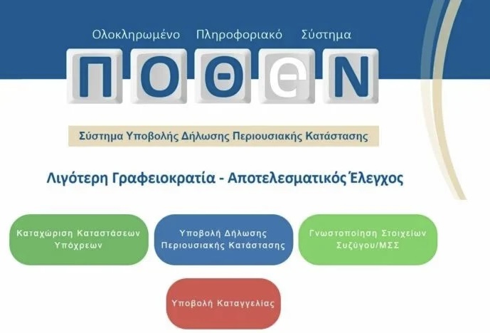 Διαθέσιμη θα είναι από σήμερα η πολυσυζητημένη νέα ηλεκτρονική πλατφόρμα για την υποβολή των δηλώσεων περιουσιακής κατάστασης («πόθεν έσχες») του 2023 από τους υπόχρεους, δηλαδή για την περιουσιακή εικόνα που είχαν το 2022. Στις 18 Νοεμβρίου αναμένεται να ανοίξει η πλατφόρμα για τις δηλώσεις του 2024, που αφορούν την περιουσιακή εικόνα του 2023. Την ίδια ημερομηνία θα ανοίξει η πλατφόρμα και για ορισμένες κατηγορίες υπόχρεων, όπως για τις αρχικές δηλώσεις περιουσιακής κατάστασης όσων απέκτησαν υποχρέωση δήλωσης από τις 28 Φεβρουαρίου 2023 έως τις 30 Σεπτεμβρίου 2024.