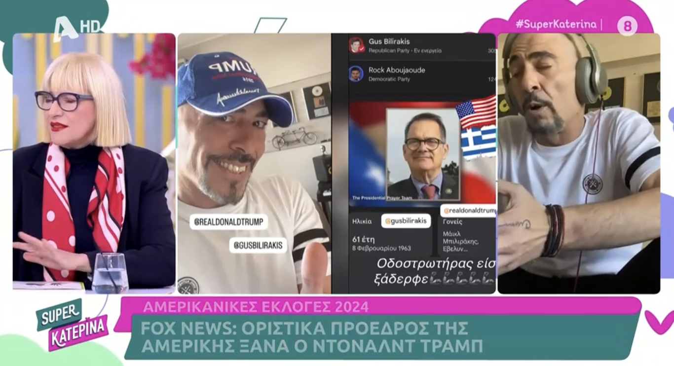 Για την επιτυχία του ξαδέλφου του, Gus Billirakis, να εκλεγεί ομοσπονδιακός βουλευτής με τους Ρεπουμπλικανούς, μίλησε ο Βαλάντης… Ο γνωστός τραγουδιστής μίλησε, λίγο αφότου έγινε γνωστή η εκλογή του Ντόναλντ Τραμπ ως προέδρου των ΗΠΑ για δεύτερη φορά.