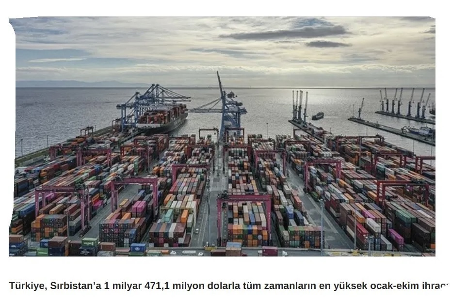Σύμφωνα με τα στοιχεία της Τουρκικής Συνέλευσης Εξαγωγέων (TİM), η Τουρκία πραγματοποίησε τις υψηλότερες εξαγωγές όλων των εποχών Ιανουαρίου-Οκτωβρίου στη Σερβία με 1 δισ. 471,1 εκατ. δολάρια.