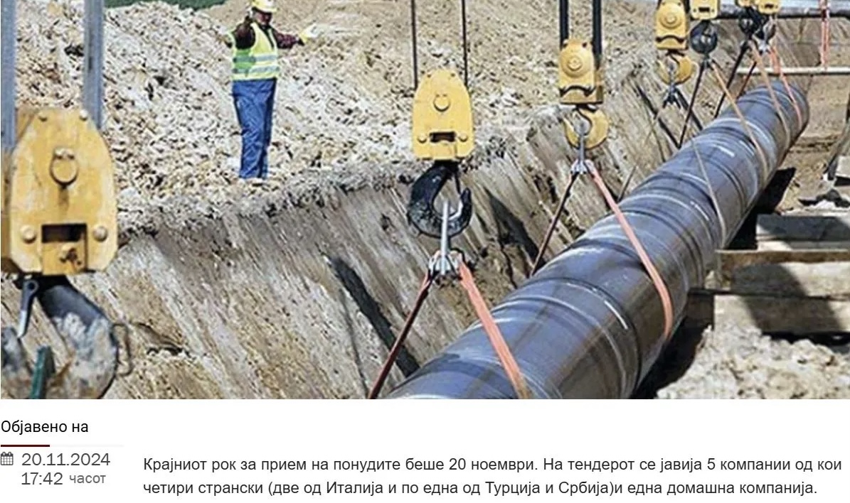 Εταιρείες από την Ιταλία, τη Σερβία και την Τουρκία και μια σκοπιανή εταιρεία υπέβαλαν αίτηση για διαγωνισμό για τον αγωγό φυσικού αερίου με την Ελλάδα, γράφουν τα ΜΜΕ των Σκοπίων.