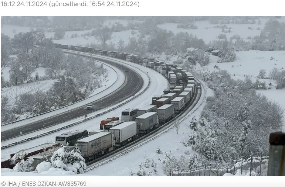 Δεν επιτρέπεται η διέλευση οχημάτων στο τμήμα Bolu Mountain του αυτοκινητόδρομου D-100 λόγω σφοδρής χιονόπτωσης. Τα οχήματα κατευθύνονται στον αυτοκινητόδρομο στο Abant Junction. Μεγάλες ουρές οχημάτων σχηματίστηκαν ξανά στην περιοχή.
