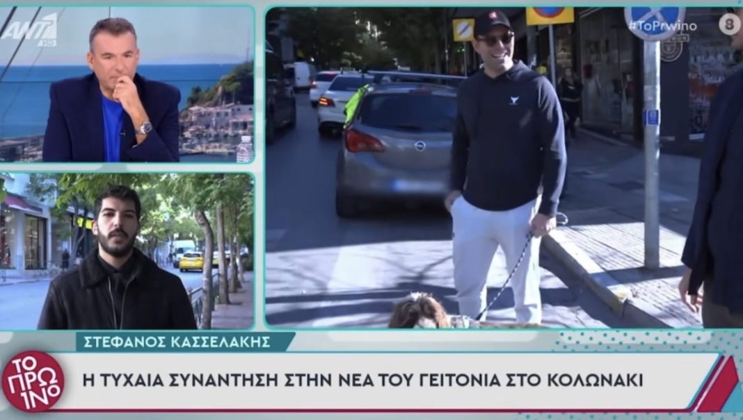 Τύχη βουνό είχε ο ρεπόρτερ του Γιώργου Λιάγκα που βρέθηκε στο Κολωνάκι έξω απο το σπίτι του Στέφανου Κασσελακη για αλλο θεμα και ξαφνικά είδε να βγαίνει για βόλτα με το κατοικίδιο του ο Στεφανος Κασσελακης.
