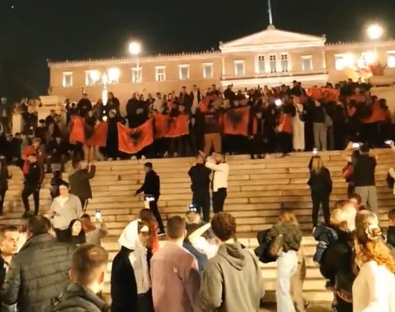 Οργανωμένες ομάδες Αλβανών που ζουν στην Ελλάδα έφτασαν με τα αυτοκίνητά τους στο Σύνταγμα, ενώ σε όλη τη διαδρομή ανέμιζαν από τα παράθυρά τους αλβανικές σημαίες!