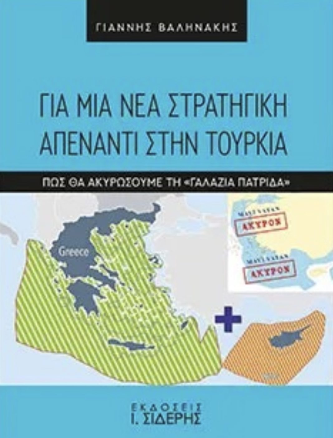 Γι’ αυτό έχει άμεση ανάγκη από μια νέα, φιλόδοξη, διεκδικητική και αποτελεσματική στρατηγική που να διαρρηγνύει το ψευτοδίλημμα «διάλογος ή πόλεμος». Αυτήν ακριβώς τη διαφορετική στρατηγική επιχειρεί να θέσει στον δημόσιο διάλογο το παρόν βιβλίο.