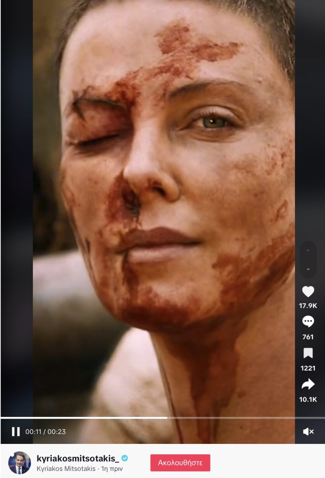 Μέχρι εδώ όλα καλά και θα ήταν καλά αν μεσα στο βιντεο του πρωθυπουργού δεν υπήρχε ένα ματωμένο πρόσωπο. Ναι σωστά διαβάζετε. Στα εγκαίνια του Μετρο Θεσσαλονίκης ο πρωθυπουργός ανεβάζει την εικόνα μιας ματωμένης γυναίκας. Στην χώρα που ειναι ακόμη νωπές οι μνήμες απο το δυστύχημα στα Τεμπη οπου δεκάδες συνάνθρωποι μας έχασαν την ζωη τους, ανεβάζει ματωμένες εικόνες στα εγκαίνια τρένου.