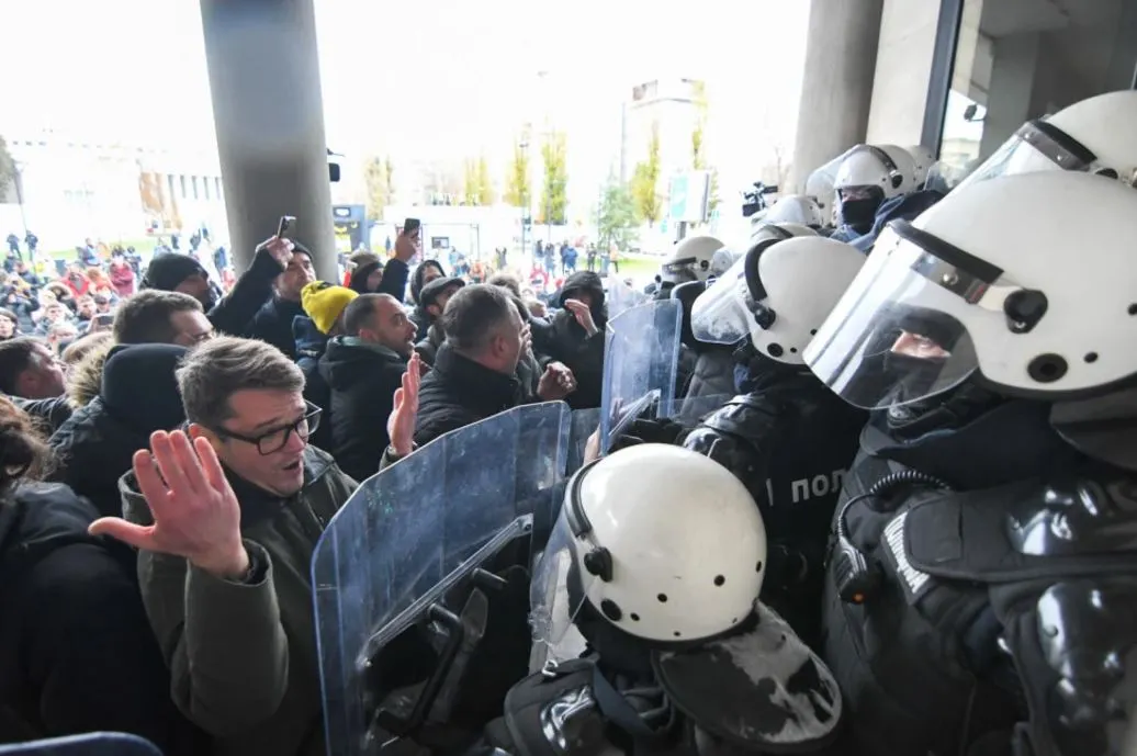 Οι συμμετέχοντες στη διαμαρτυρία, που βρίσκονται μπροστά από τη Συνέλευση του Νόβι Σαντ, στην προσπάθησαν τους να εισέλθουν βίαια στο κτίριο της Συνέλευσης εμποδίστηκαν από τη σερβική αστυνομία, η οποία προσπάθησε να αποτρέψει τους συμμετέχοντες στη συγκέντρωση με ασπίδες να εισέλθουν στο κτίριο.