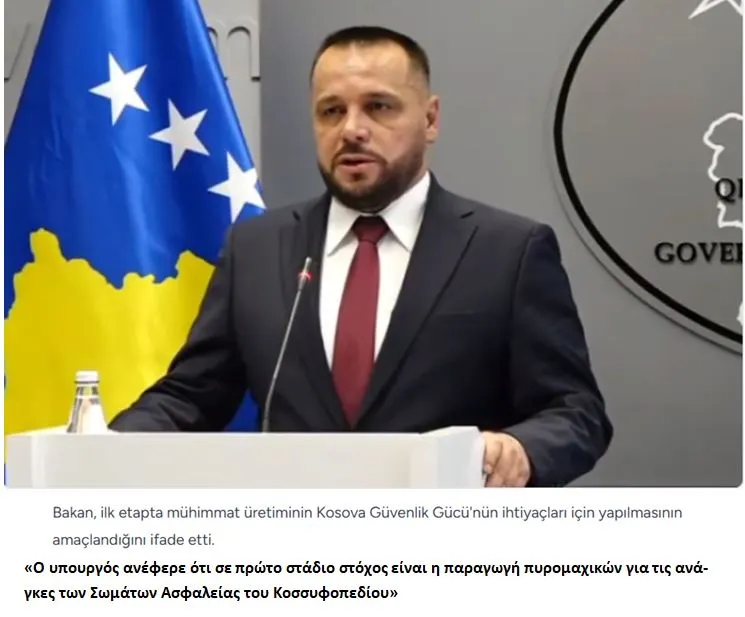 Ο υπουργός τόνισε ότι σε πρώτο στάδιο στόχος είναι η παραγωγή πυρομαχικών για τις ανάγκες των Σωμάτων Ασφαλείας του Κοσσυφοπεδίου αλλά και εξαγωγές σύμφωνα με τους Τούρκους.