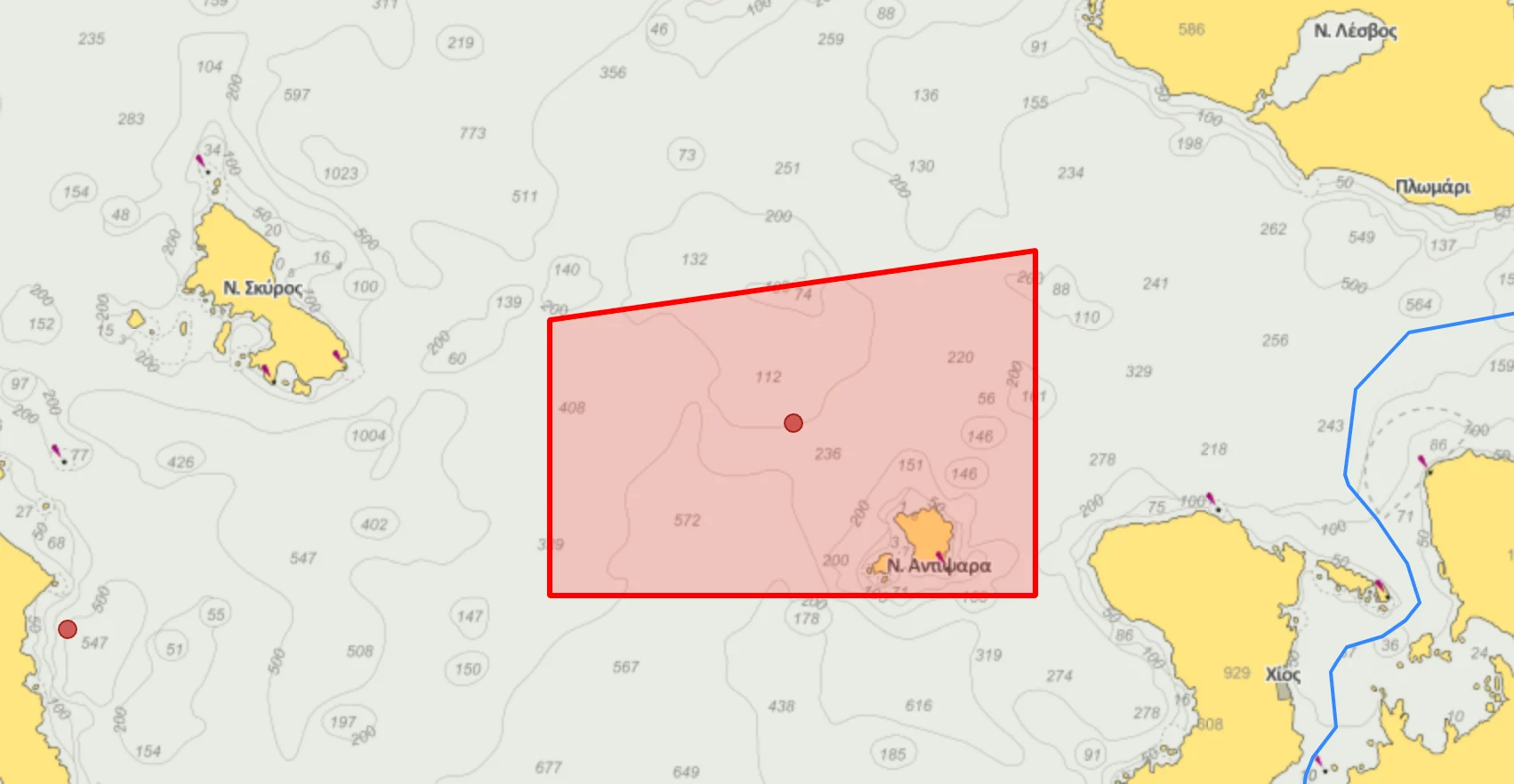 Η Υδρογραφική Υπηρεσία της Λήμνου έχει εκδώσει NAVTEX για αεροναυτικές ασκήσεις με πυρά σε παραπλήσια περιοχή, στα Ψαρά.