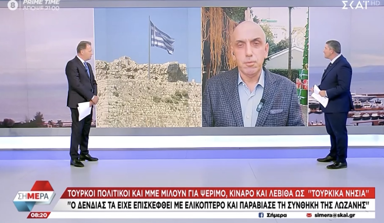 «Όταν εμείς ασχολούμασταν με τους σπουδαστές στις στρατιωτικές μας σχολές, ο υπουργός Άμυνας της Ελλάδας πραγματοποίησε κάποιες επισκέψεις σε νησιά και παραβίασε τη Συνθήκη της Λωζάνης. Περιόδευσε με ελικόπτερα σε νησιά όπως στην Ψέριμο, στην Κίναρο και στα Λέβιθα, εκεί πόζαρε μαζί με τους Έλληνες στρατιώτες, έκανε κάποιες δηλώσεις. Κι αυτά τα είχε κάνει δίπλα στην Τουρκία. Δηλαδή είχαμε παραβίαση συνόρων από την Έλληνα υπουργό και το υπουργείο Άμυνας παραμένει σιωπηλό. Στις 26 Σεπτεμβρίου του 2024, ο Έλληνας υπουργός Άμυνας Νίκος Δἐνδιας πήρε μαζί του τον αρχηγό των Ενόπλων Δυνάμεων και τον Αρχηγό Στρατού και περιόδευσε στα νησιά που βρίσκονται εντός των τουρκικών χωρικών υδάτων. Και πόζαρε μαζί με τους στρατιώτες που εγκαταστάθηκαν στα νησιά παραβιάζοντας τη Συνθήκη της Λωζάνης. Η αντιπολίτευση μιλάει για την σιωπή του υπουργείου Άμυνας» ανέφερε το ρεπορτάζ του τηλεοπτικού δικτύου NOW TV.