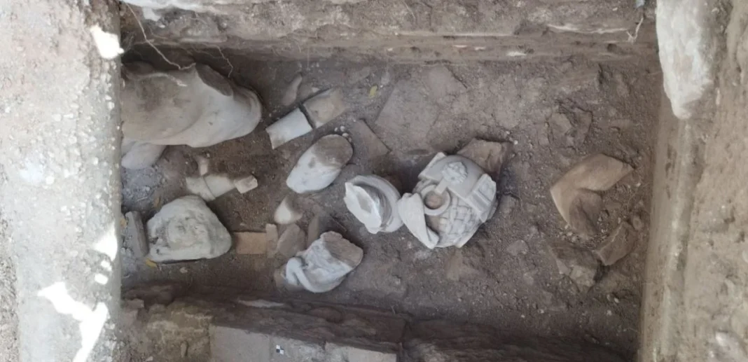 Όπως αναφέρει ανακοίνωση του ΥΠΠΟ, πρόκειται για θραύσματα γλυπτών, άνω και κάτω άκρων, τα οποία κατά πάσα πιθανότητα σχετίζονται με το άγαλμα του Ερμή που έχει ήδη ανασυρθεί, κορμός δεύτερου αγάλματος επίσης ανδρικής μορφής φυσικού μεγέθους, τοποθετημένος επί της δεξιάς πλευράς του, σπαράγματα ειδωλίου, καθώς και μεγάλος αριθμός λύχνων του 5ου αι. μ.Χ.