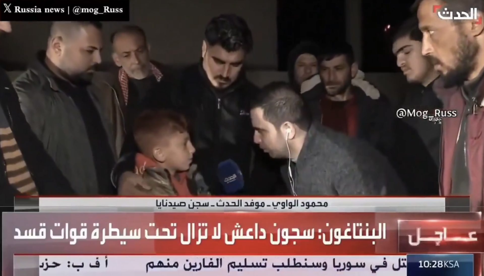 Το παιδάκι υποτίθεται ότι ψάχνει τον μπαμπά του στις υποτιθέμενες φυλακές – κολαστήρια του Άσαντ.