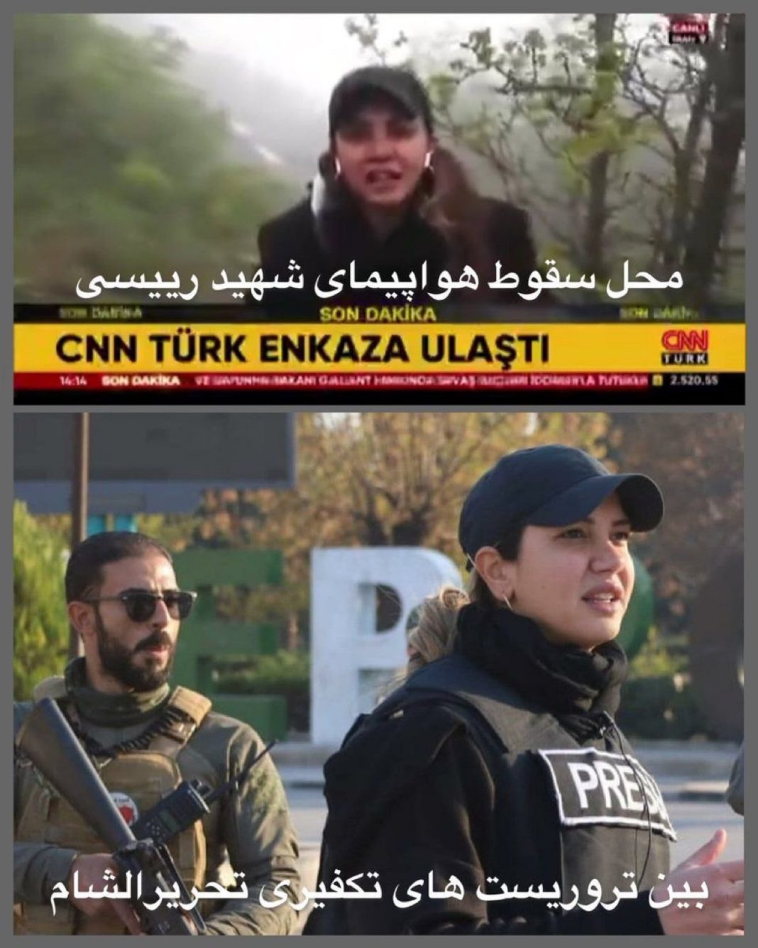 Άλλη μία τουρκάλα «δημοσιογράφος» εμφανίζεται πρώτη στο σημείο που συνετρίβη το ελικοπτερο του τέως πρωθυπουργού του Ιράν. Ο οποίος σύμφωνα με μία εκδοχή, έπεσε στην παγίδα του Ερντογάν, ο οποίος τον έπεισε να επισκεφθεί τον συνεταίρο του, Αλίεφ του Αζερμπαϊτζάν. Στον γυρισμό, το ελικόπτερο συνετρίβη και η κοπελίτσα έφτασε πρώτη στο σημείο. Ούτε να ήξερε τι πρόκειται να συμβεί.