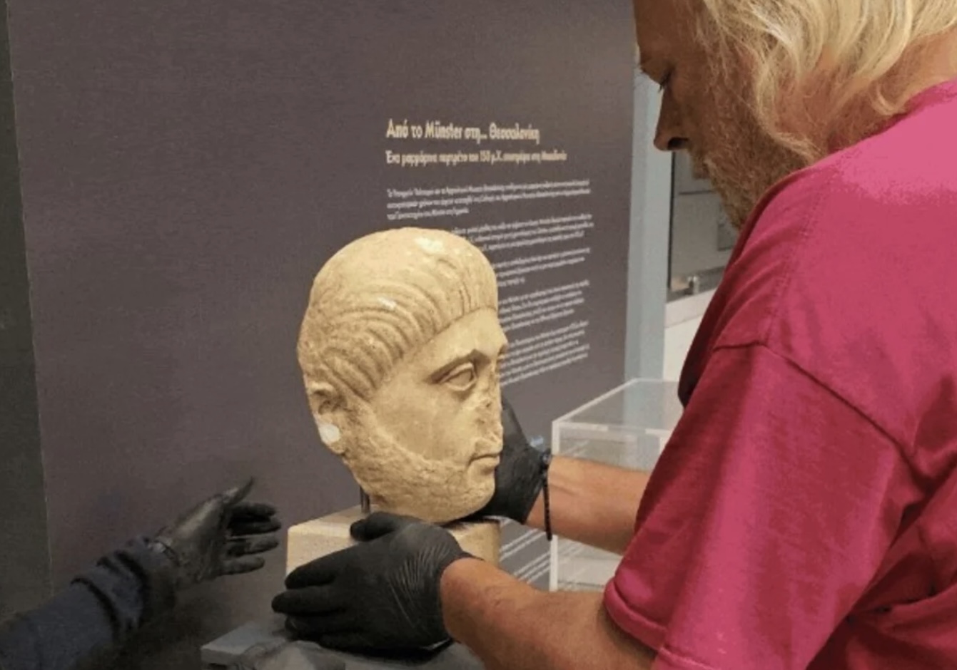 Η μορφή ενός γενειοφόρου άνδρα «υποδέχεται» τους επισκέπτες στο Αρχαιολογικό Μουσείο Θεσσαλονίκης και «αφηγείται» την ιστορία των αιώνων της ζωής του, από το 150 μ.Χ. περίπου. Πρόκειται για μια μαρμάρινη ανδρική κεφαλή, ρωμαϊκών χρόνων, η οποία τον προηγούμενο μήνα επιστράφηκε από το Αρχαιολογικό Μουσείο του Πανεπιστημίου του Μύνστερ της Γερμανίας (WWU Münster/Münster University).