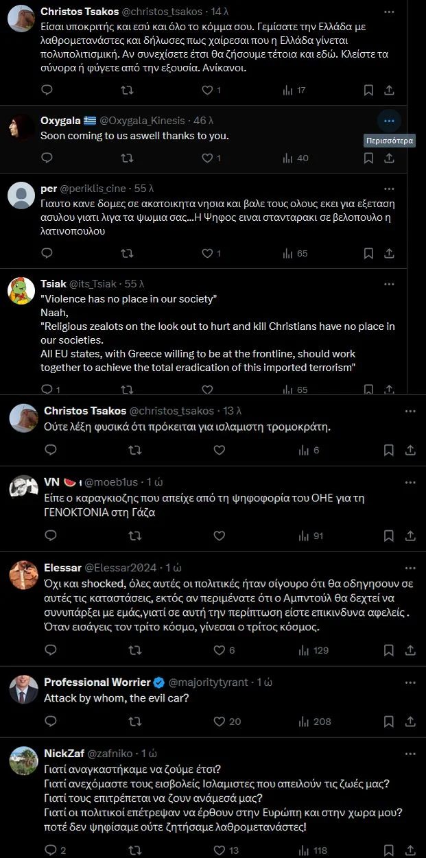 Τα δεκάδες σχόλια των διαδικτυακών χρηστών κάτω από την ανάρτησή του, ήταν από οργισμένα έως υβριστικά, με επίκεντρο τη λαθρομετανάστευση (και όχι μόνο).